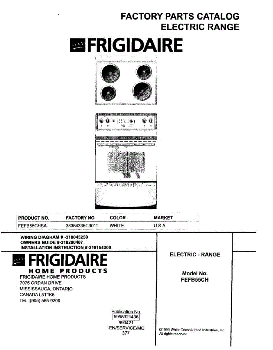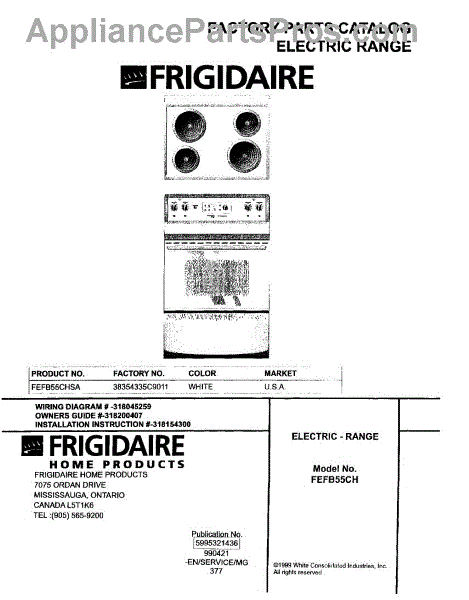 Parts for Frigidaire FEFB55CHSA: 01 - Cover Parts