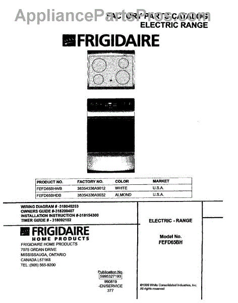 Parts for Frigidaire FEFD65BHDB: 01 - Cover Parts