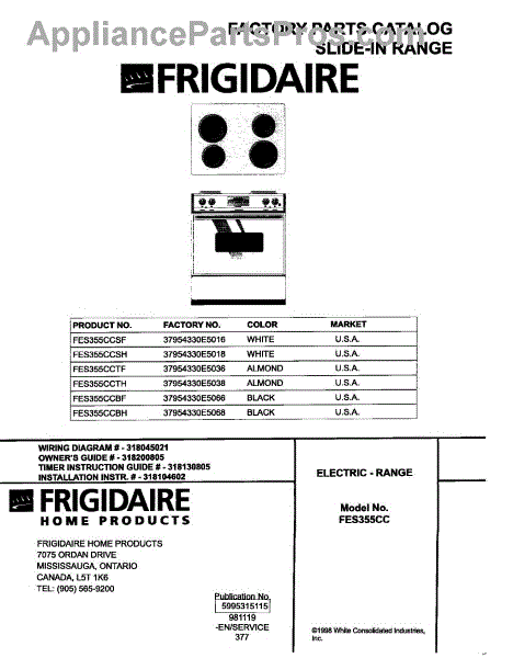 Parts for Frigidaire FES355CCBF: 01 - Cover Parts