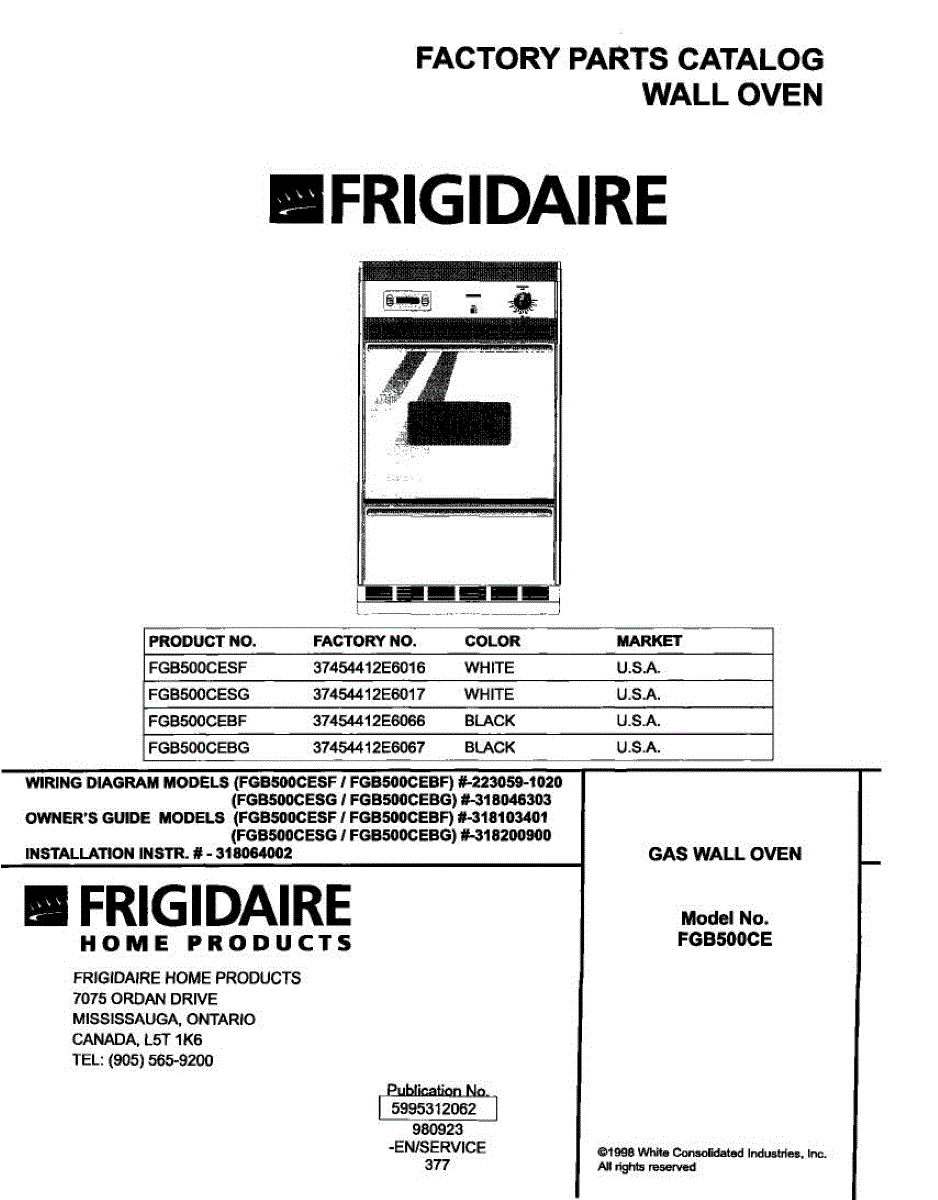 Parts for Frigidaire FGB500CESF: 01 - Cover Parts