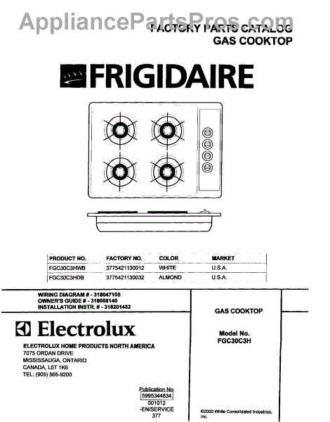 Frigidaire Cooktop Parts