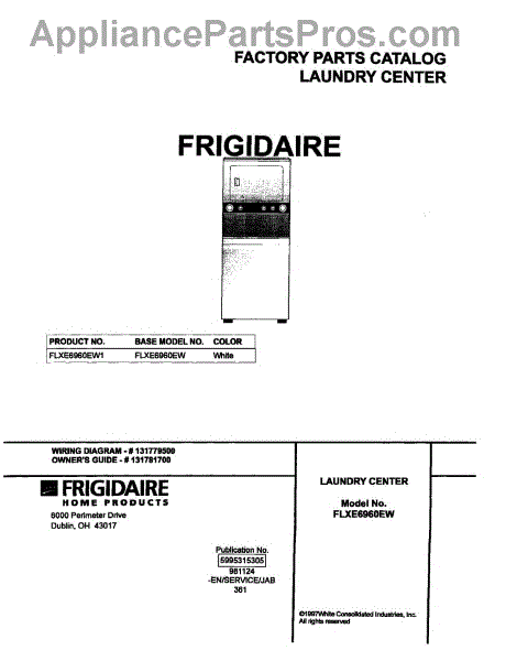 Parts for Frigidaire FLXE6960EW1: 01 - Cover Parts