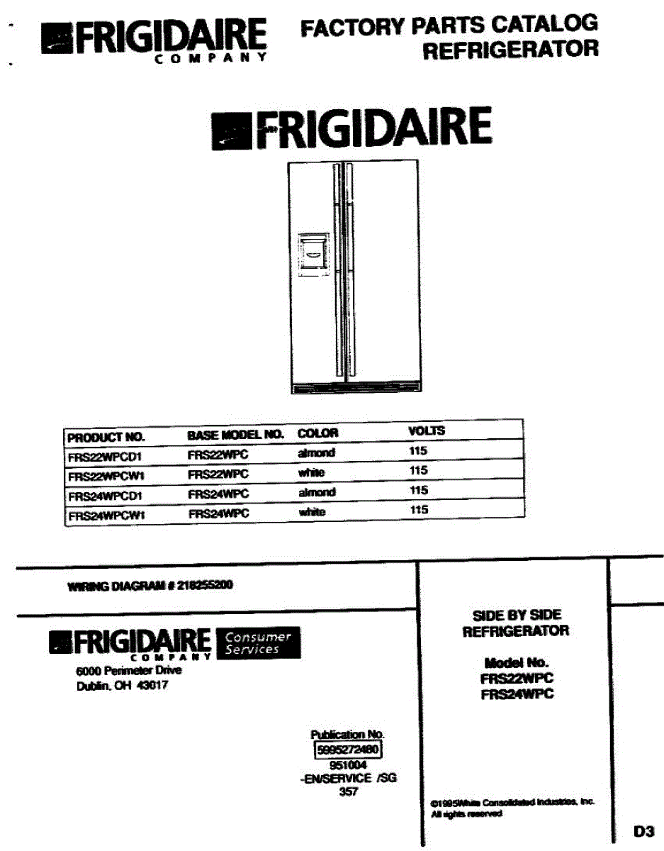Parts for Frigidaire FRS22WPCW1: 01 - Cover Parts