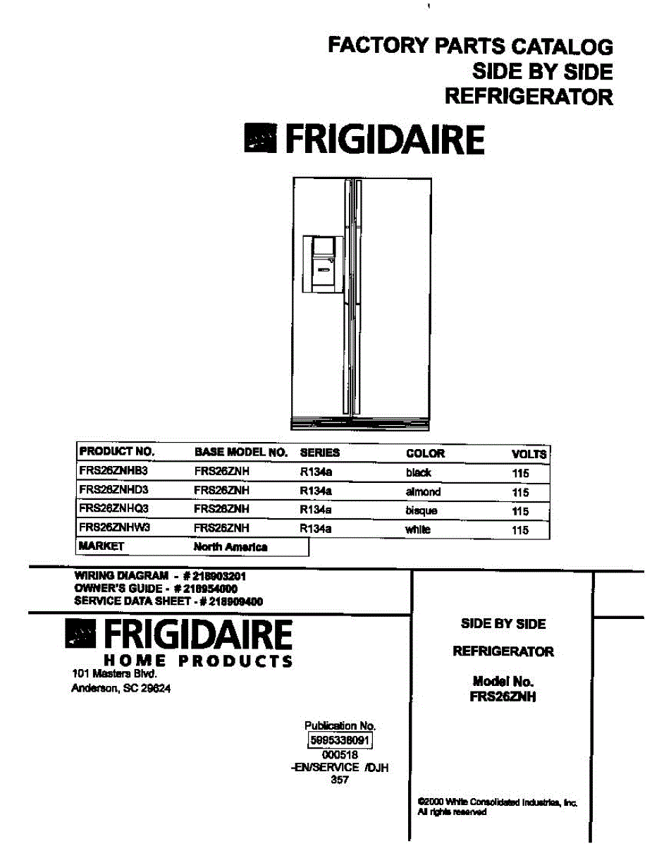 Parts for Frigidaire FRS26ZNHB3: 01 - Cover Parts