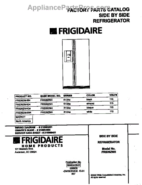 Parts for Frigidaire FRS26ZNHD4: 01 - Cover Parts
