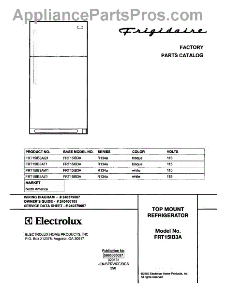 Parts for Frigidaire FRT15IB3AW1: 01 - Cover Parts
