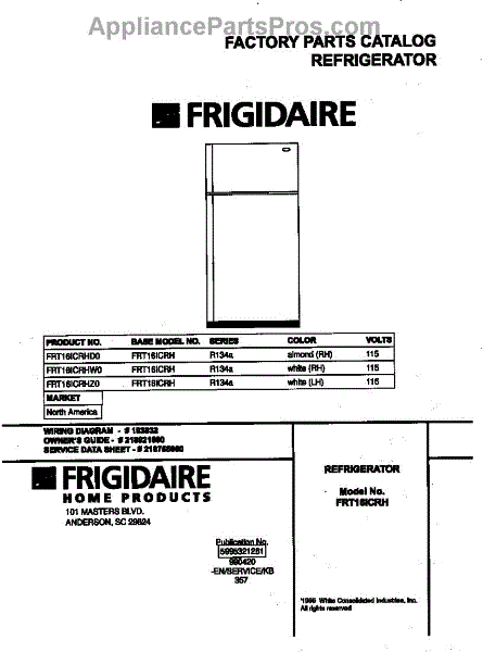 Parts for Frigidaire FRT16ICRHW0: 01 - Cover Parts