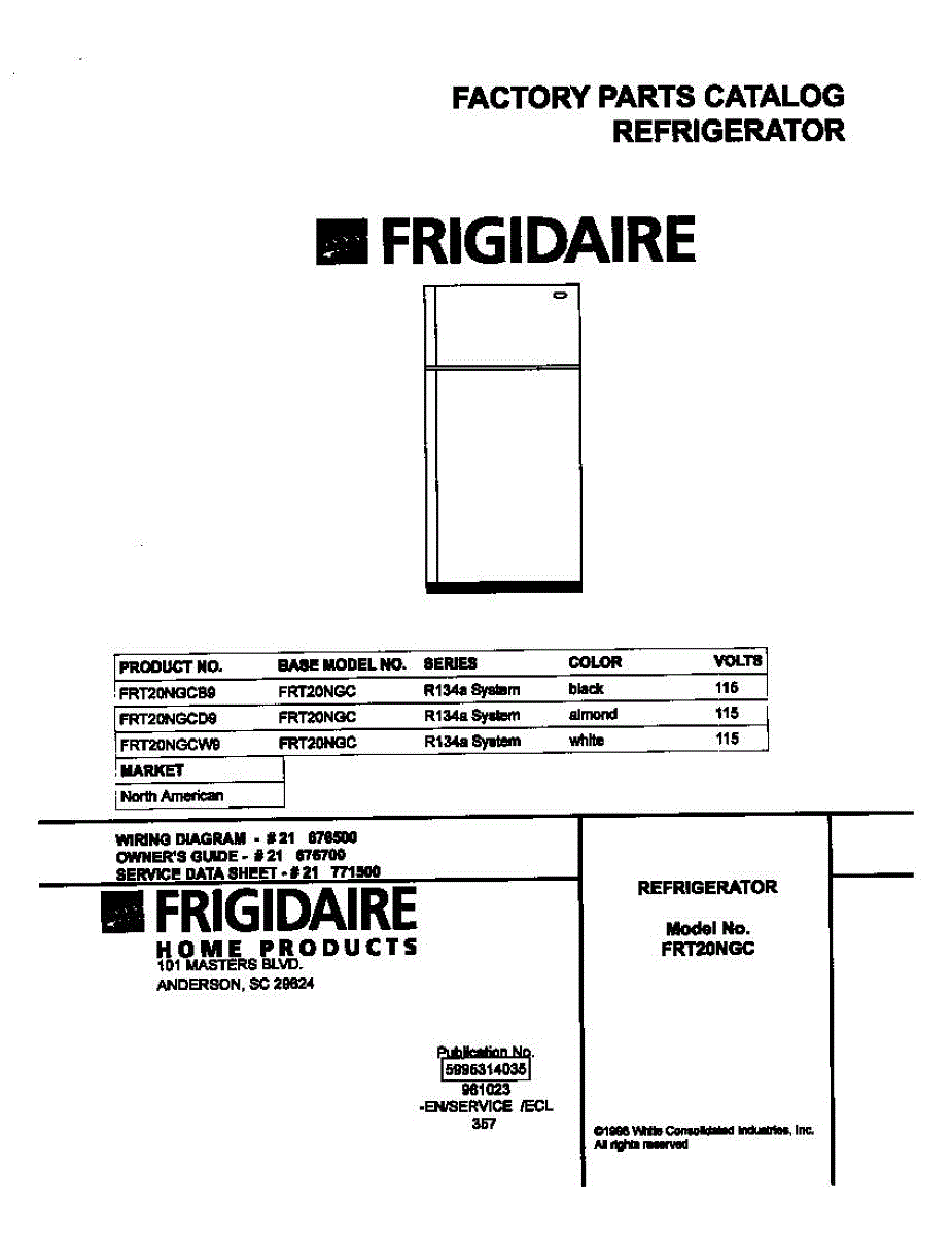 Parts for Frigidaire FRT20NGCW9: 01 - Cover Parts