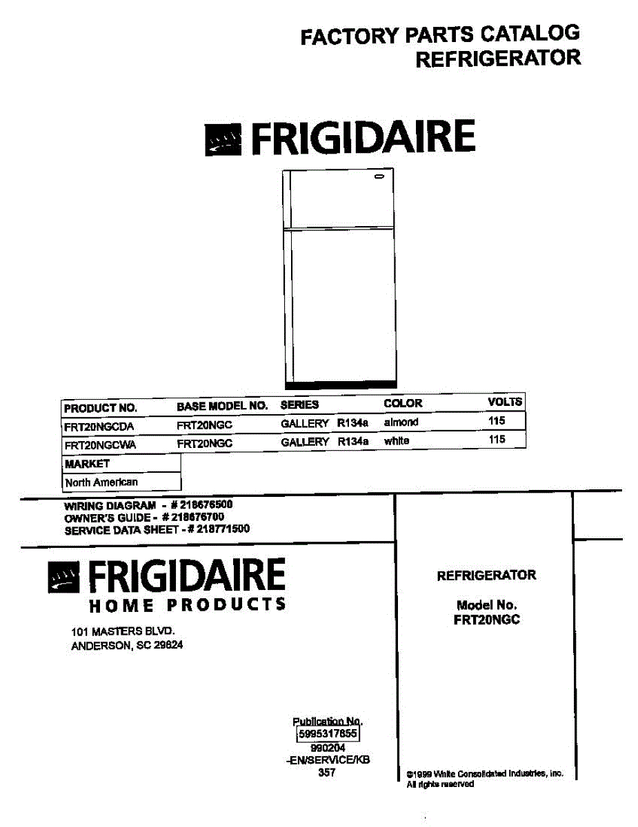 Parts for Frigidaire FRT20NGCWA: 01 - Cover Parts