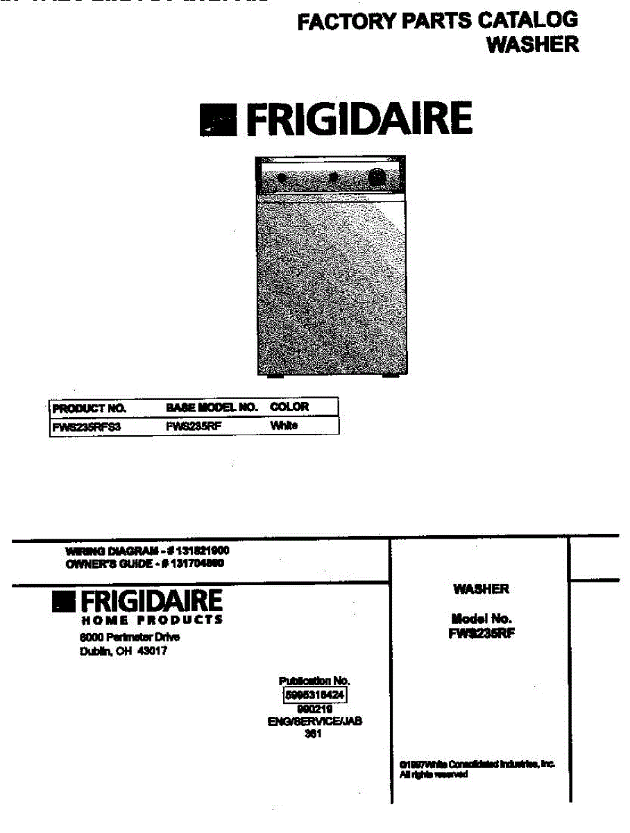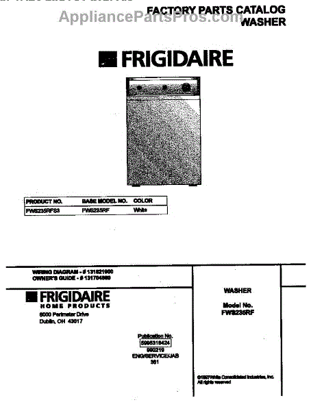 Parts for Frigidaire FWS235RFS3: 01 - Cover Parts