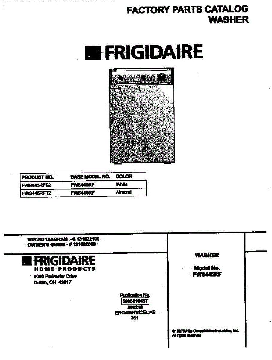 Parts for Frigidaire FWS445RFS2: 01 - Cover Parts