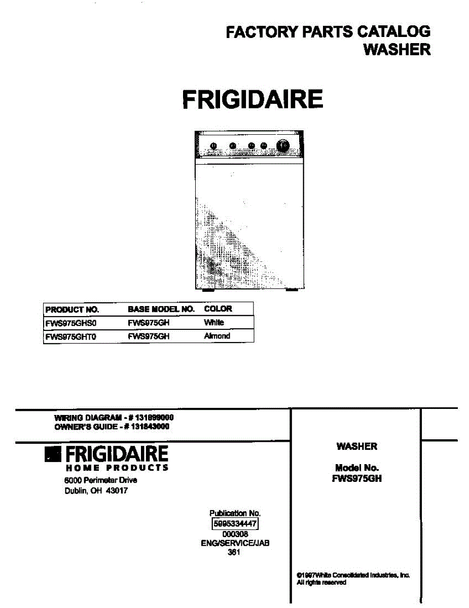 Parts for Frigidaire FWS975GHS0: 01 - Cover Parts