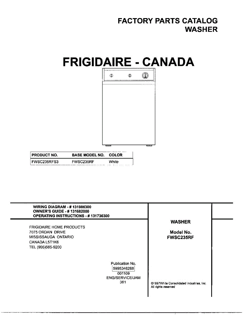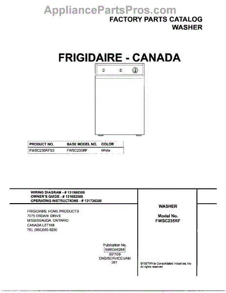 Parts for Frigidaire FWSC235RFS3: 01 - Cover Parts