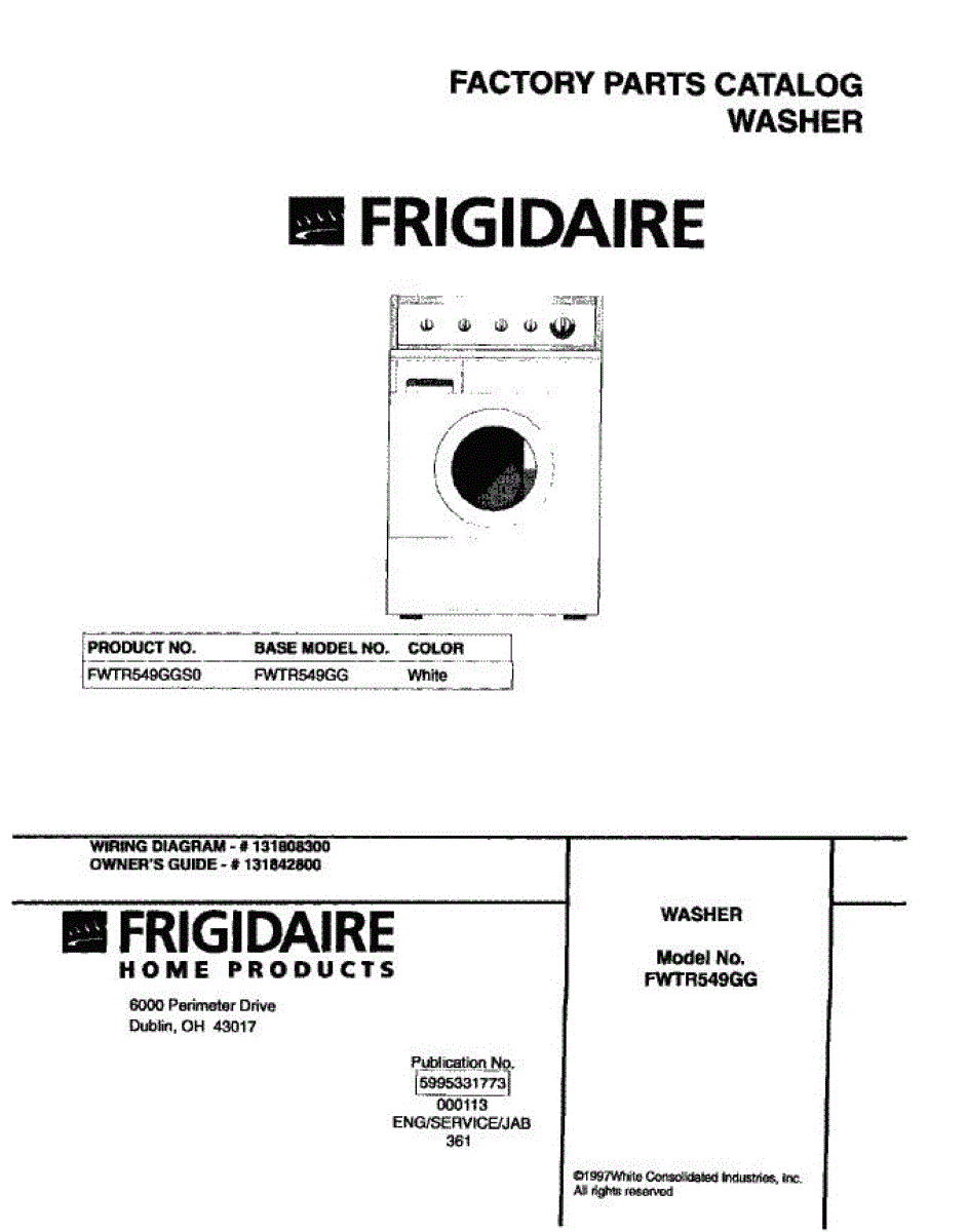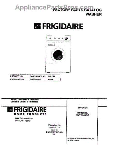 Parts for Frigidaire FWTR549GS0: 01 - Cover Parts