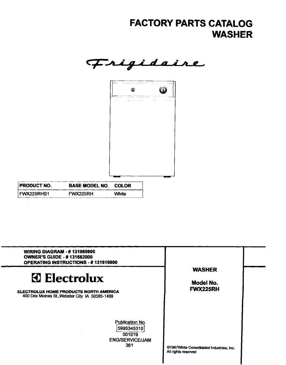 Parts for Frigidaire FWX225RHS1: 01 - Cover Parts