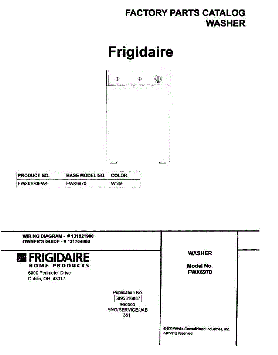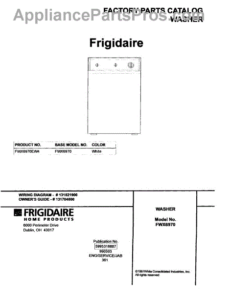 Parts for Frigidaire FWX6970EW4: 01 - Cover Parts
