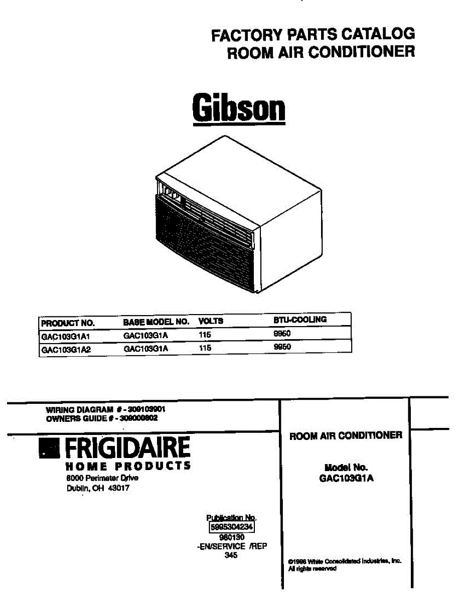 Parts for Frigidaire GAC103G1A2: 01 - Cover Parts