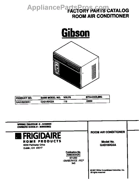 Parts for Frigidaire GAS182G2A1: 01 - Cover Parts