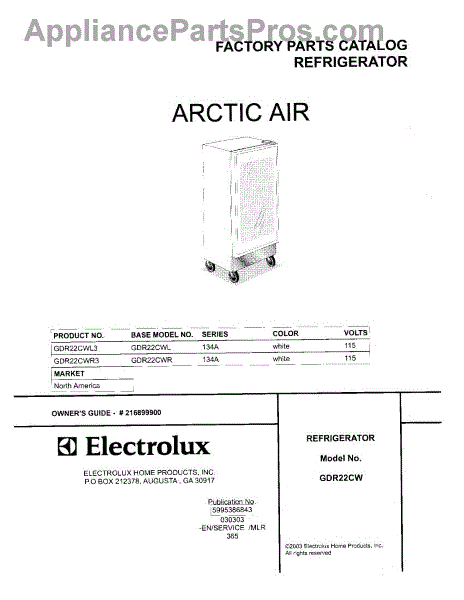 Parts for Frigidaire GDR22CWR3: 01 - Cover Parts