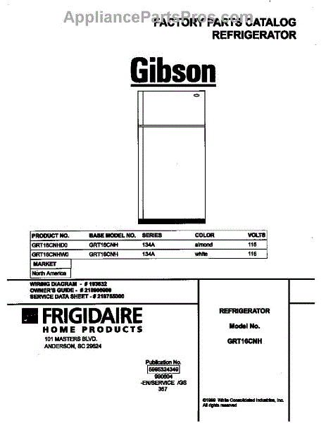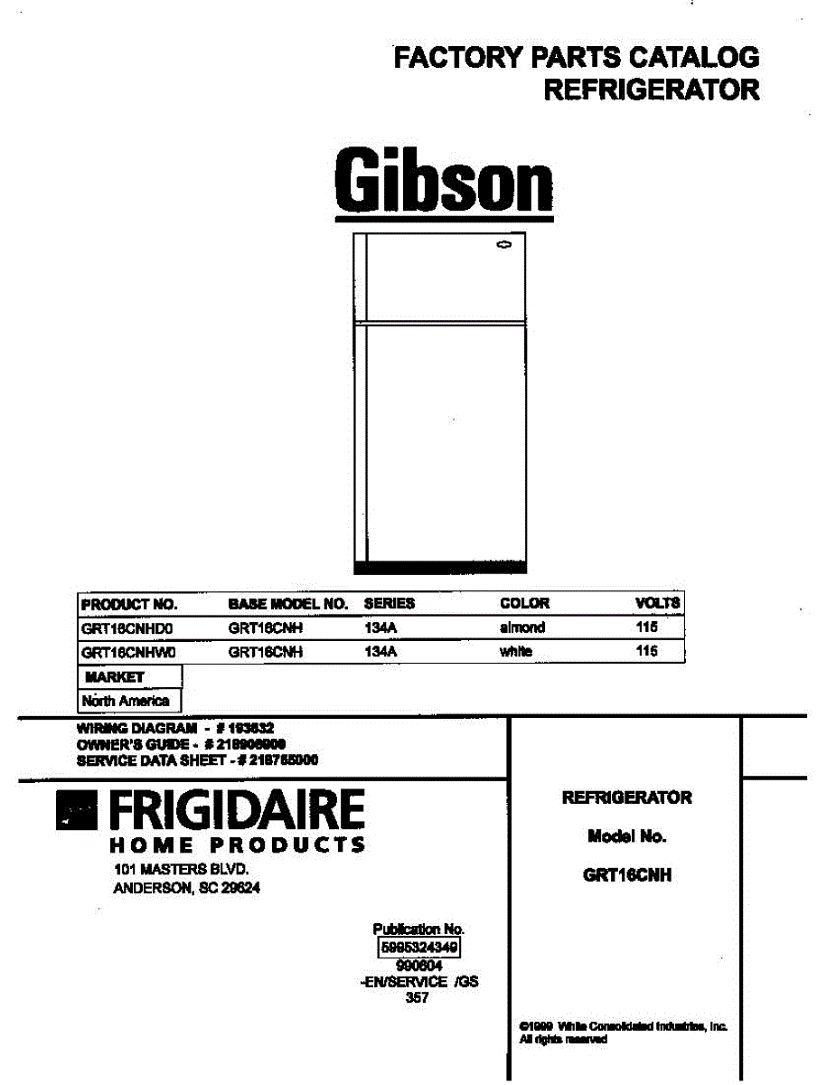 Parts for Frigidaire GRT16CNHW0: 01 - Cover Parts