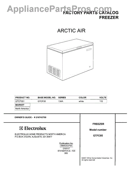 Parts for Frigidaire GTCF051: 01 - Cover Parts