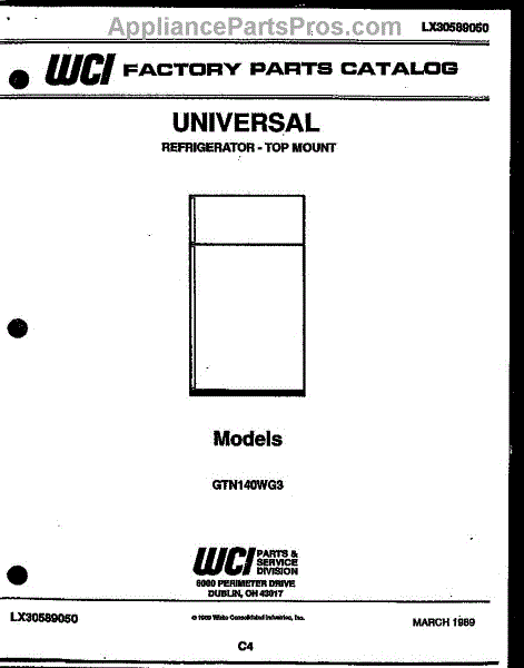 Parts for Frigidaire GTN140WGD3: 01 - Cover Parts