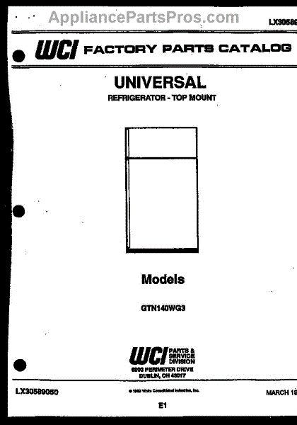 Parts for Frigidaire GTN140WGH3: 01 - Cover Parts