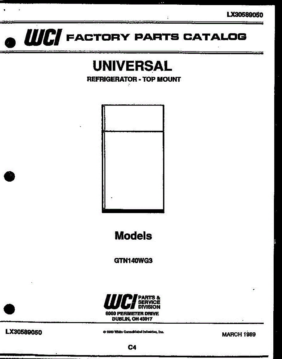 Parts for Frigidaire GTN140WGV3: 01 - Cover Parts