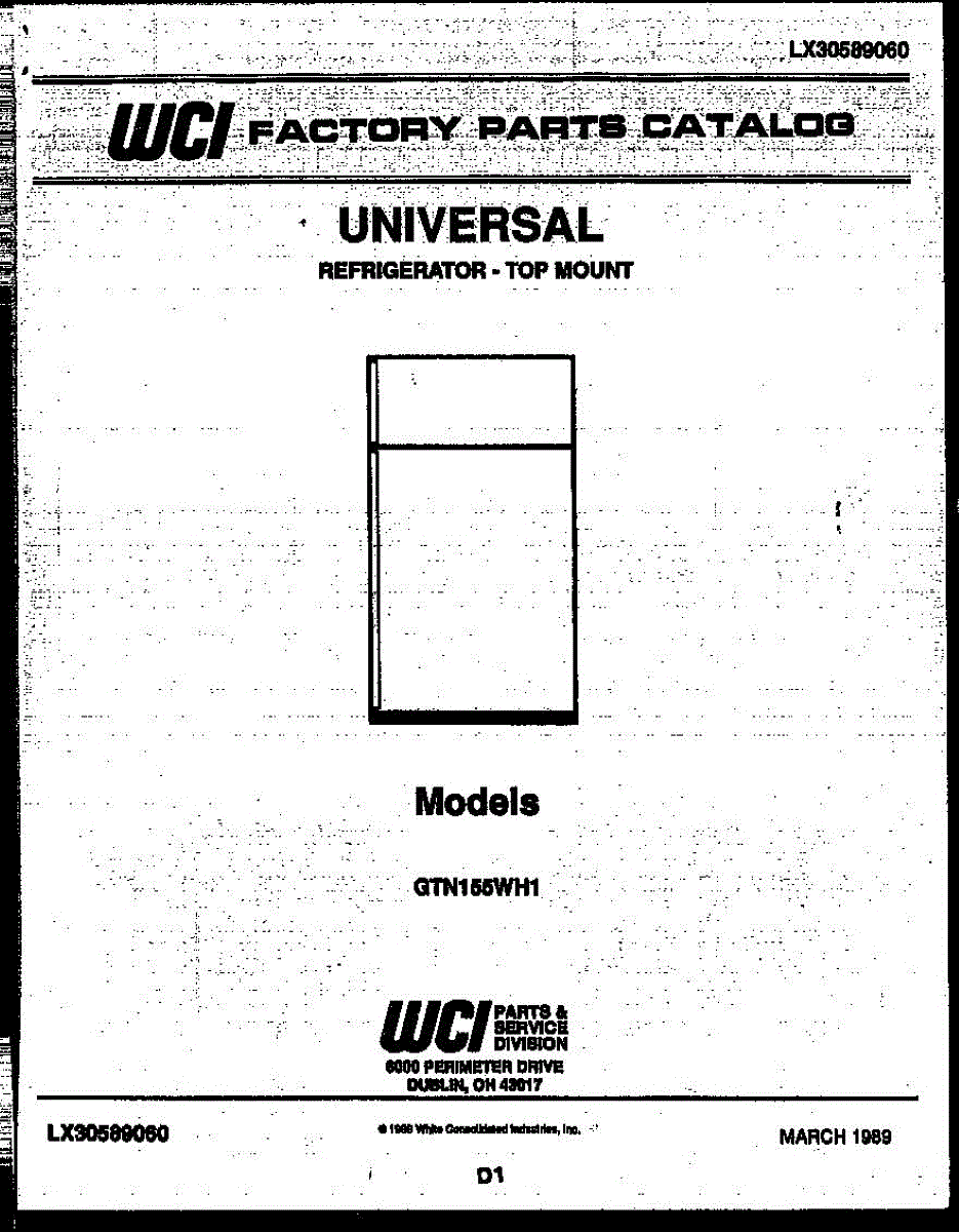 Parts for Frigidaire GTN155WHD1: 01 - Cover Parts