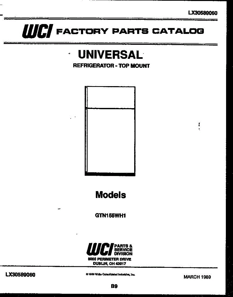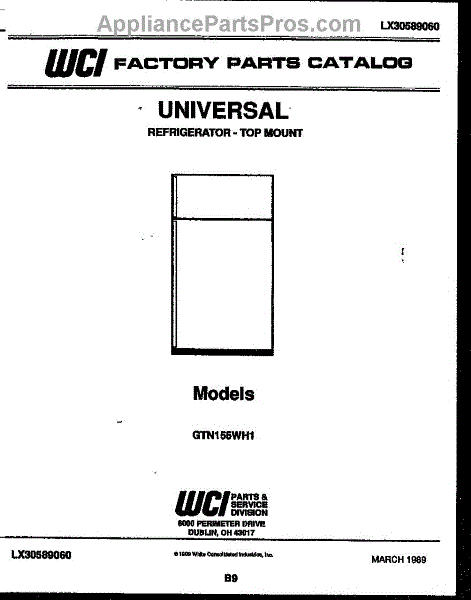 Parts for Frigidaire GTN155WHL1: 01 - Cover Parts