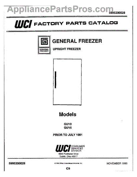 Parts for Frigidaire GU16: 01 - Cover Parts