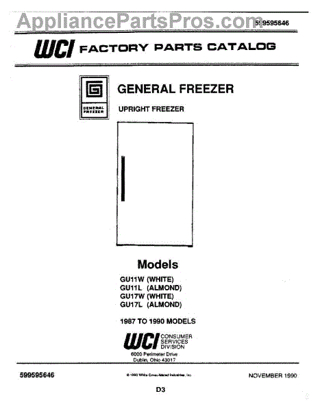 Parts for Frigidaire GU17W: 01 - Cover Parts