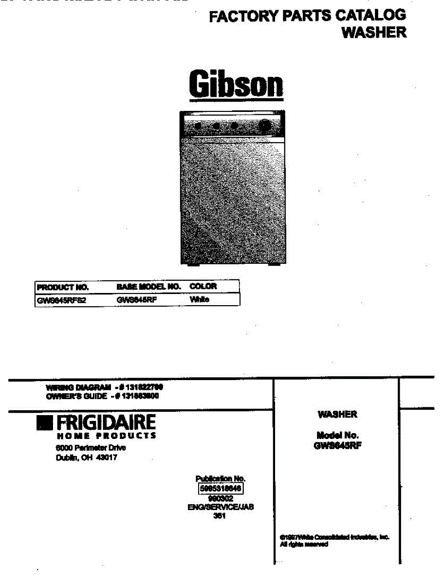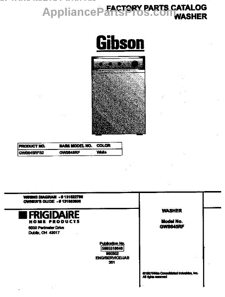 Parts for Frigidaire GWS645RFS2: 01 - Cover Parts