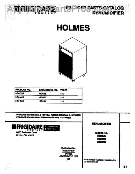 Parts for Frigidaire HDH25A: 01 - Cover Parts
