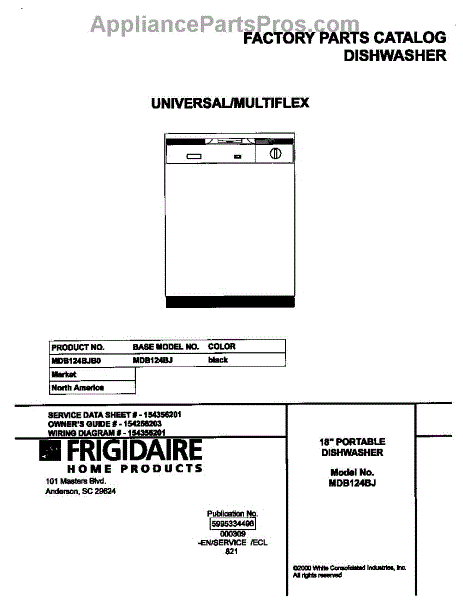 Parts for Frigidaire MDB124BJB0: 01 - Cover Parts