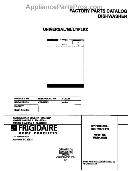 Parts for Frigidaire MDB421RHS0: 01 - Cover Parts