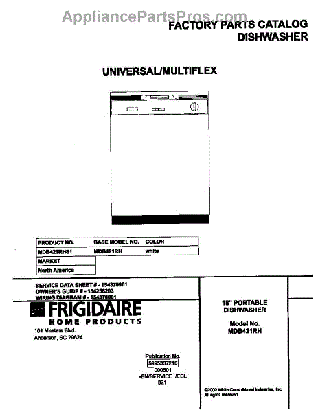 Parts for Frigidaire MDB421RHS1: 01 - Cover Parts