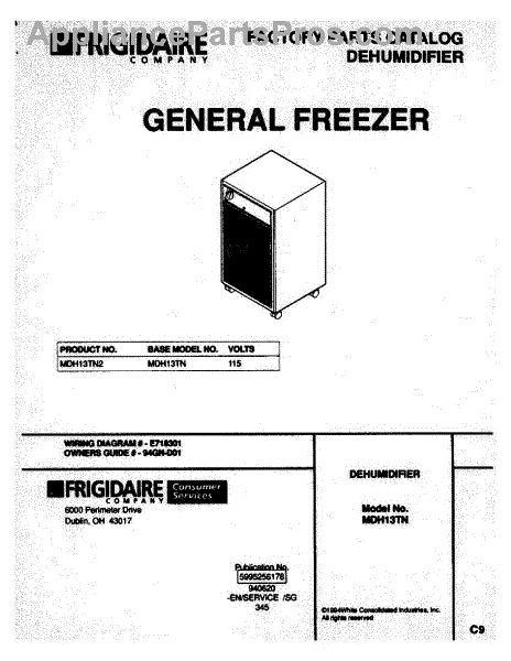 Parts for Frigidaire MDH13TN2: 01 - Cover Parts