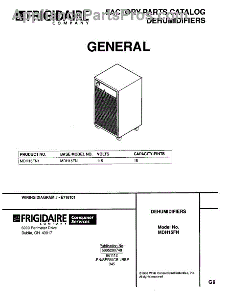Frigidaire Dehumidifier Parts