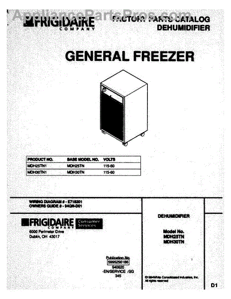 Parts for Frigidaire MDH25TN1: 01 - Cover Parts