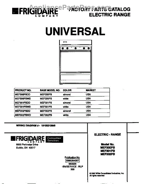 Parts for Frigidaire MEF302PBWD: 01 - Cover Parts