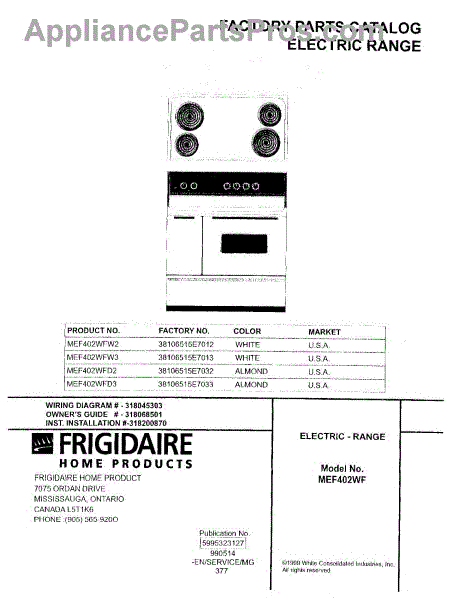 Parts for Frigidaire MEF402WFD2: 01 - Cover Parts