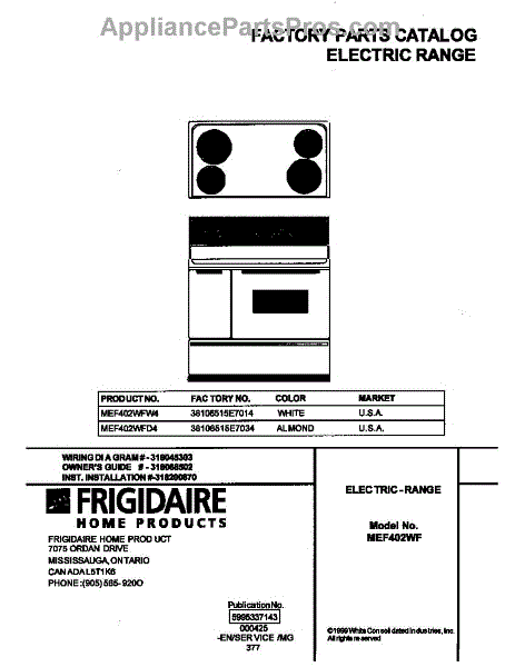 Parts for Frigidaire MEF402WFD4: 01 - Cover Parts