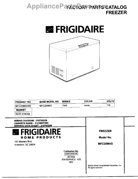 Parts for Frigidaire MFC25M4GW2: 01 - Cover Parts