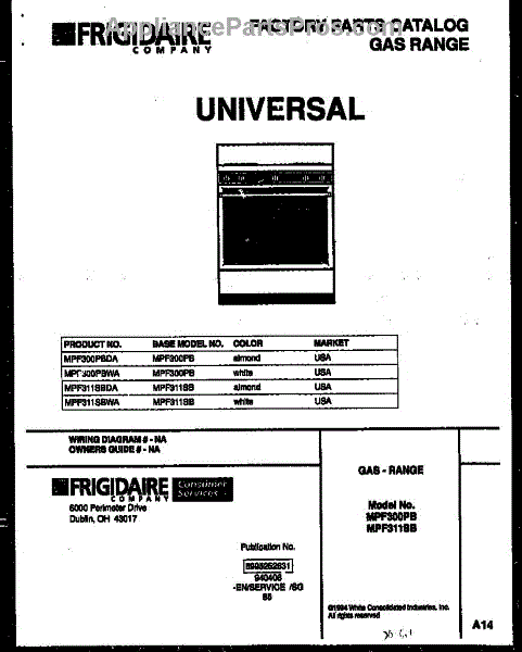 Parts for Frigidaire MPF300BPDA: 01 - Cover Parts