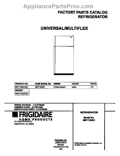 Parts for Frigidaire MRT13BSCW5: 01 - Cover Parts