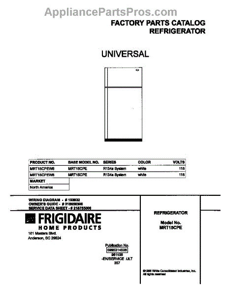 Parts for Frigidaire MRT15CPEW6: 01 - Cover Parts