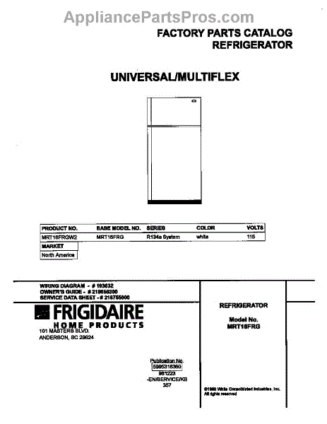 Parts for Frigidaire MRT16FRGW2: 01 - Cover Parts