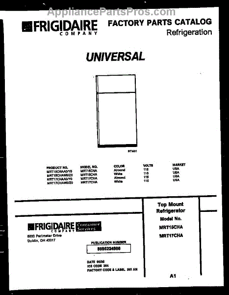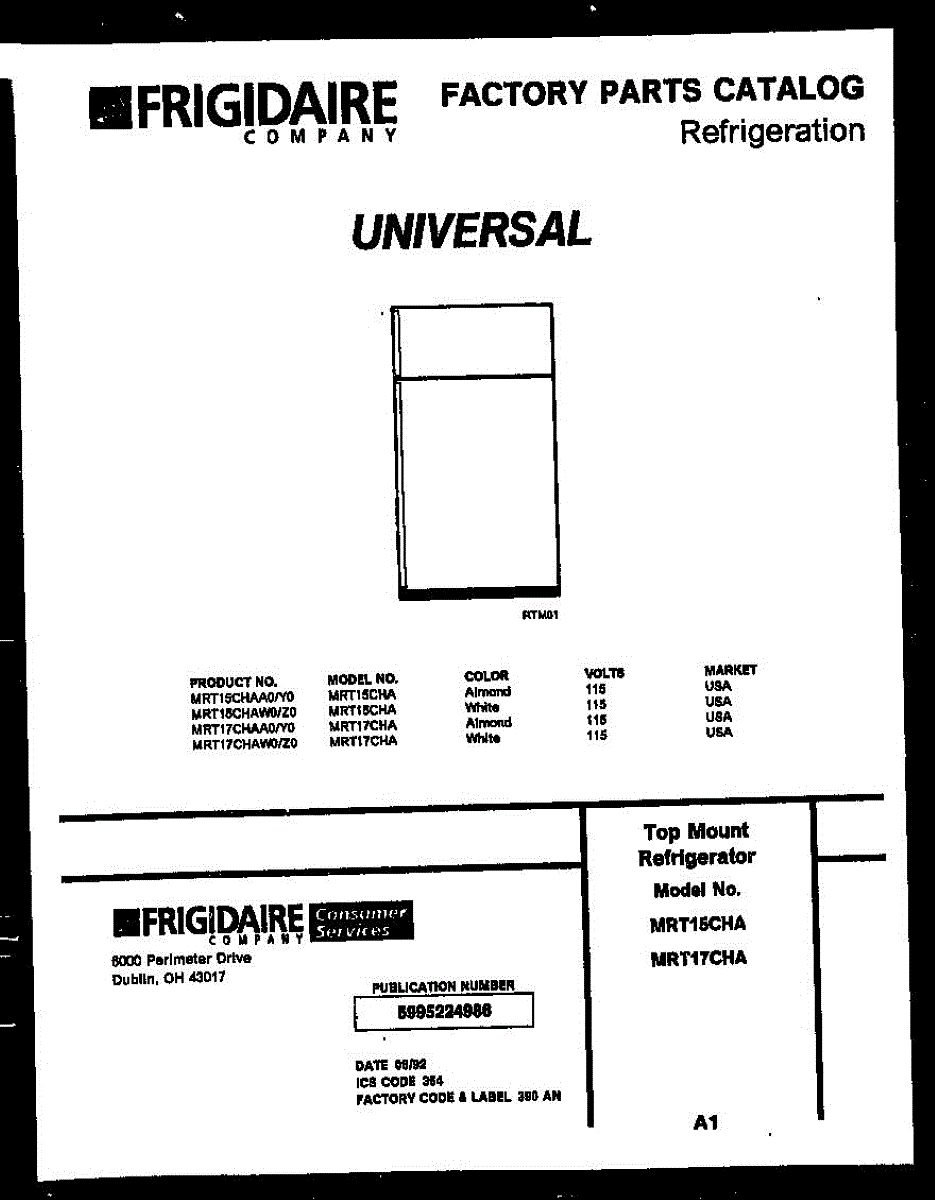 Parts for Frigidaire MRT17CHAZ0-00: 01 - Cover Parts