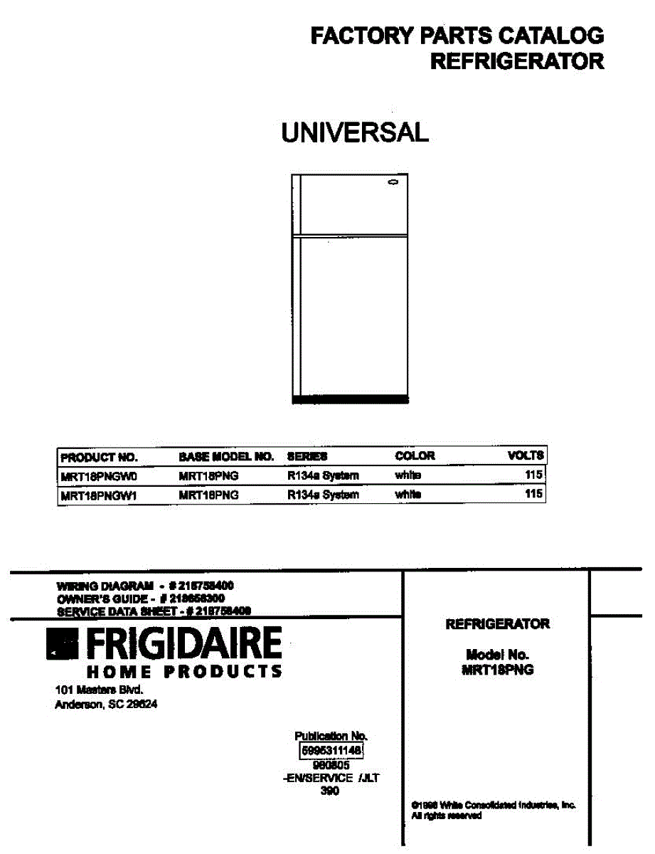 Parts for Frigidaire MRT18PNGW1: 01 - Cover Parts